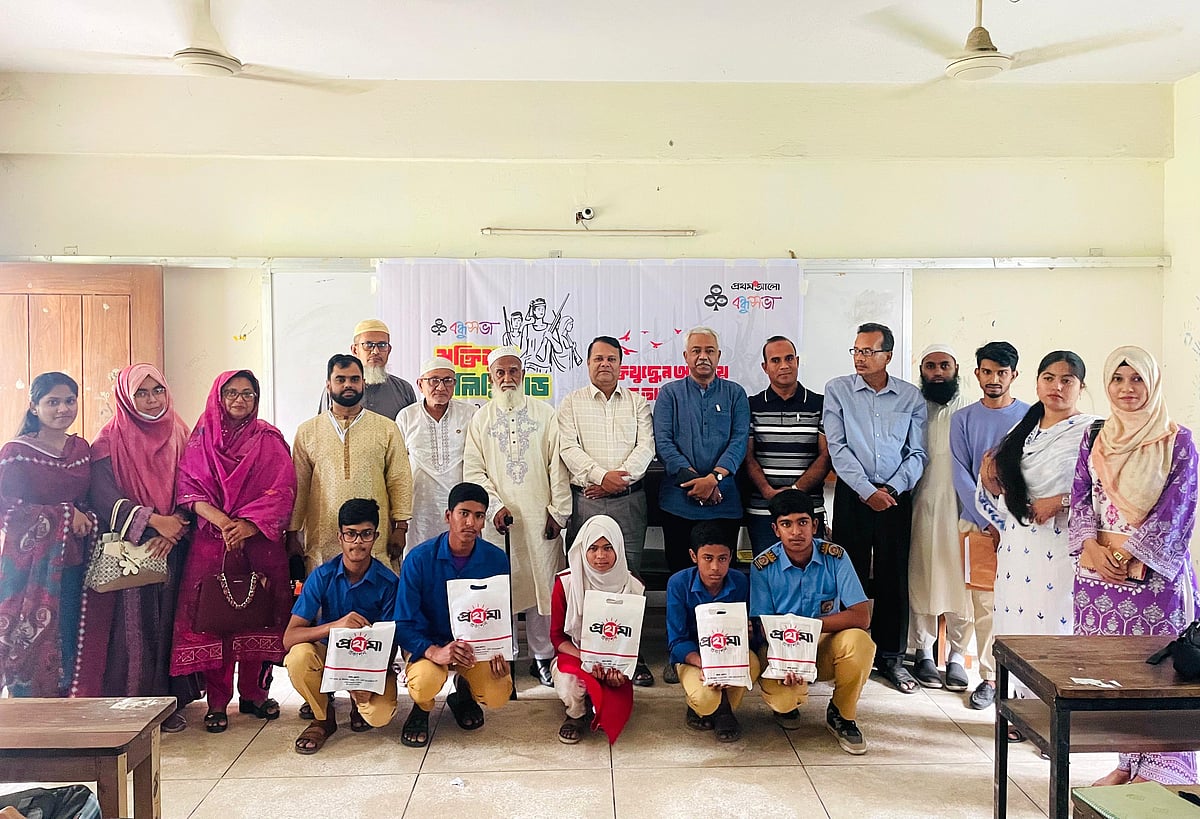 কিশোরগঞ্জে ‘বন্ধুসভা মুক্তিযুদ্ধ অলিম্পিয়াড-২০২৬’–এ বিজয়ী শিক্ষার্থীদের হাতে পুরস্কার তুলে দেন অতিথিরাগুরুদয়াল সরকারি কলেজের ইতিহাস বিভাগের প্রধান অধ্যাপক কাজী করিম উল্লাহ বলেন, ‘এ দেশে মুক্তিযুদ্ধের সঙ্গে কোনো কিছুর তুলনা হয় না। মুক্তিযুদ্ধ কখনো ভোলার নয়। লাল-সবুজের পতাকায় মুক্তিযুদ্ধের ইতিহাস চিরকাল বেঁচে থাকবে।’